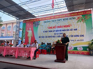 Về kể chuyện có ông Hoàng Bá Nguyên chủ nhiệm CLB và ông Lê Đức Sơn phó chủ nhiệm CLB ông kể cháu nghe phường Minh Hưng, về phía nhà trường có thầy Phan Minh Chánh hiệu trưởng nhà trường cùng toàn thể quý thầy cô chủ nhiệm các lớp, thông qua buổi kể chuyện đã thu hút trên 1000 em tham dự thông qua buổi kể chuyện, liên đội cũng phát động phong trào: Mỗi tuần 1 câu chuyện đẹp, một cuấn sách hay, một tấm gương sáng. Qua đó đã thu hút 40/40 chi đội tham gia..